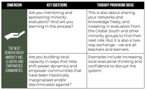 Identifying, mentoring and sponsoring minority evaluators, to help build the next generation of leaders that could disrupt and transform the evaluation sector.